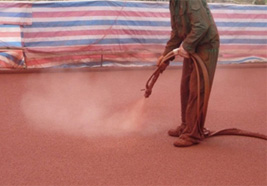 The Pu topcoat (BSPM0423) mixed with EPDM rubber granule (anti aging, resistant to discoloration of all-weather EPDM granule) with special spraying on the black rubber base surface spraying 2-3 times), be sure to make granules layer is smooth; finish wrap EPDM granules, in order to make the playground more durable.