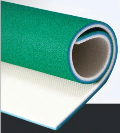 The wear-resistant layer made of 100% pure PVC extends the service life of the product. The surface layer is sandwiched with fiberglass non-woven fabric and bidirectional polyester mesh fabric. In the selection of foam layer materials, high-strength and high-density foam layer is selected, which has good vibration absorption function, allowing the impulse generated during exercise to act on the surface of the adhesive, with the ability to absorb impact energy, thereby protecting the ankle joints, spinal cord and brain of athletes, and avoiding sports injuries.