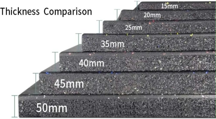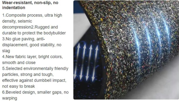 Materials: Composite rubber mats is composed with rubber roll on top and rubber tile on bottom. The rubber rolls can be made into any color and tile can be different thickness.