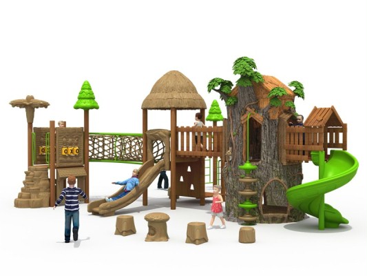 Outdoor Playground Equipment combines entertainment with exercise. Created fantastic circumstances for Children when they doing exercise. All of our products use non-toxic LLDPE imported from Korea. The main pillar is made of a galvanized 114mm pipe, the surface of the pipe is decorated with powder coating. The platform can provide covered by PVC coated. The fastener and footplate are applied with the technology of casting aluminum. Our quality keeps in conformity with international standards. Outdoor playground equipment incorporated the elements of lovely puppets and animals which are easily accepted by children as friends. The overall design is full of magic power just like fairy tales, which attracts children to enter the magic world and inspires their curiosity. Our outdoor play equipment includes a climbing rope net, outer space playground, climbing wall playset, etc. Children stay in this dreamed world, their curiosity and exploring desire will be satisfied greatly, and their abilities of cognition, judgment, and problem-soling.