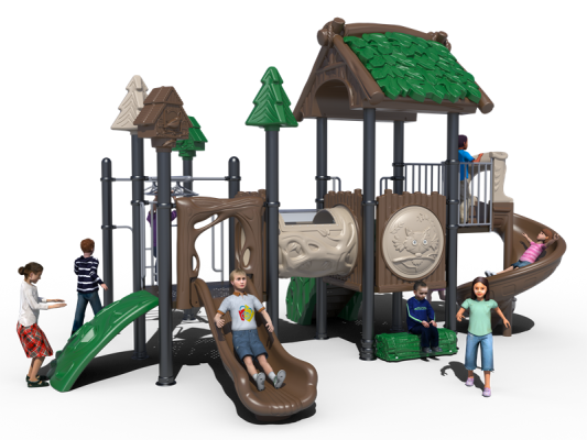 Outdoor Playground Equipment combines entertainment with exercise. Created fantastic circumstances for Children when they doing exercise. All of our products use non-toxic LLDPE imported from Korea. The main pillar is made of a galvanized 114mm pipe, the surface of the pipe is decorated with powder coating. The platform can provide covered by PVC coated. The fastener and footplate are applied with the technology of casting aluminum. Our quality keeps in conformity with international standards. Outdoor playground equipment incorporated the elements of lovely puppets and animals which are easily accepted by children as friends. The overall design is full of magic power just like fairy tales, which attracts children to enter the magic world and inspires their curiosity. Our outdoor play equipment includes a climbing rope net, outer space playground, climbing wall playset, etc. Children stay in this dreamed world, their curiosity and exploring desire will be satisfied greatly, and their abilities of cognition, judgment, and problem-soling.