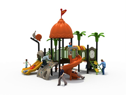 Outdoor Playground Equipment combines entertainment with exercise. Created fantastic circumstances for Children when they doing exercise. All of our products use non-toxic LLDPE imported from Korea. The main pillar is made of a galvanized 114mm pipe, the surface of the pipe is decorated with powder coating. The platform can provide covered by PVC coated. The fastener and footplate are applied with the technology of casting aluminum. Our quality keeps in conformity with international standards. Outdoor playground equipment incorporated the elements of lovely puppets and animals which are easily accepted by children as friends. The overall design is full of magic power just like fairy tales, which attracts children to enter the magic world and inspires their curiosity. Our outdoor play equipment includes a climbing rope net, outer space playground, climbing wall playset, etc. Children stay in this dreamed world, their curiosity and exploring desire will be satisfied greatly, and their abilities of cognition, judgment, and problem-soling.