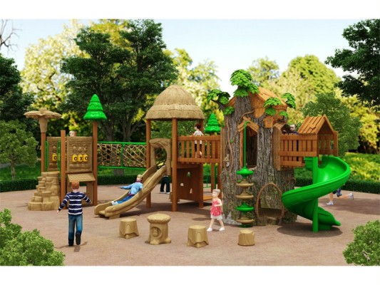 Outdoor Playground Equipment combines entertainment with exercise. Created fantastic circumstances for Children when they doing exercise. All of our products use non-toxic LLDPE imported from Korea. The main pillar is made of a galvanized 114mm pipe, the surface of the pipe is decorated with powder coating. The platform can provide covered by PVC coated. The fastener and footplate are applied with the technology of casting aluminum. Our quality keeps in conformity with international standards. Outdoor playground equipment incorporated the elements of lovely puppets and animals which are easily accepted by children as friends. The overall design is full of magic power just like fairy tales, which attracts children to enter the magic world and inspires their curiosity. Our outdoor play equipment includes a climbing rope net, outer space playground, climbing wall playset, etc. Children stay in this dreamed world, their curiosity and exploring desire will be satisfied greatly, and their abilities of cognition, judgment, and problem-soling.