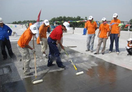Confirm the substrate has been leveling, and moisture content is no more than 8% for construction, using brush or roller construction high permeability waterproof primer (BSF0401), in order to strengthen the basis and with surface bonding ability, waterproof to enhance the cohesive role.