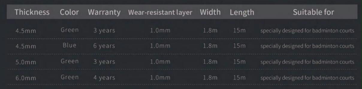 100% pure PVC is used in the 1.2mm wear-resistant layer, which extends the product lifespan. The selection of high-strength and high-density foam layer for the foam layer has excellent vibration absorption function, which absorbs the impact energy generated during exercise on the adhesive surface, protecting the athlete's ankle joints and spinal cord from injury and making them injury-free during exercise.