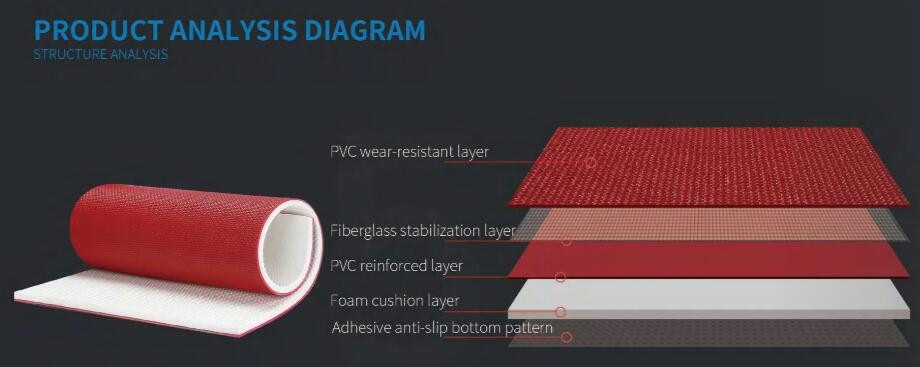 The exquisite and delicate fabric like surface texture provides good friction and flexibility for multi-directional bouncing movements. The thickened wear-resistant layer and the sandwich structure of fiberglass and bidirectional polyester mesh fabric make the product more stable.